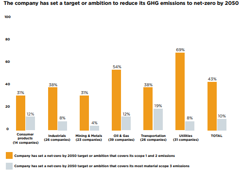 Thanks to this benchmark, CA 100+ spotted that about 43% of the initiative’s focus companies now have goals or commitments for net-zero emissions by 2050 or sooner in some form. While 51% also have short-term emissions reduction targets (to 2025) and 38% have medium-term targets (2026-2035).