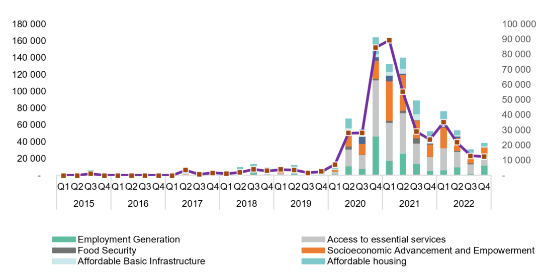 Beyond decreasing issuances figures, there are ongoing transformations or initiatives which are underpining the market on the medium to long term, with more standardized and formalized approaches, including the launch of Social Bonds Funds on the investors side. Moreover, the total issuance numbers might hide dynamics in terms of Use-of-Proceeds categories breakdown (Figure 4 below).