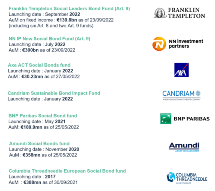 In parallel, new social bond funds are being launched as a result of an increasing demand for investment strategies delivering social benefits. These new funds are classified under SFDR article 9 - defined as funds which “have sustainable investment as (their) objective or a reduction in carbon emissions as (their) objective.” Among the most recent ones: