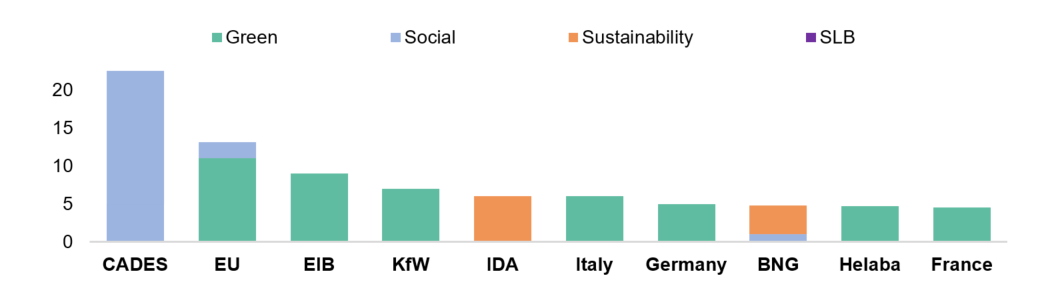 Whilst counter-cyclical social bonds were issued to bridge urgent funding needs related to the pandemic’s effects in the previous years (as seen on Figure 2), less volatile ones could also emerge as the market standardizes and demand on the investor side becomes more structured (see below on Social Bonds Funds).