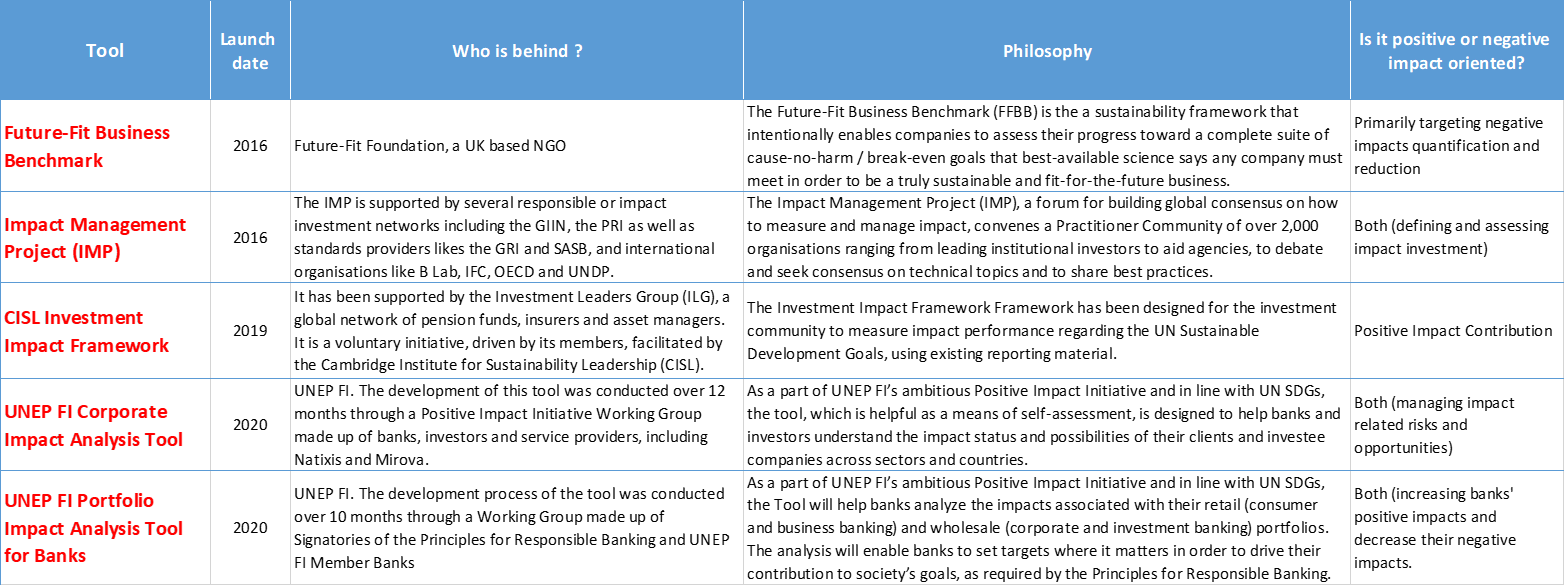 - The UNEP FI Corporate Impact Analysis Tool and Portfolio Impact Analysis Tool for Banks