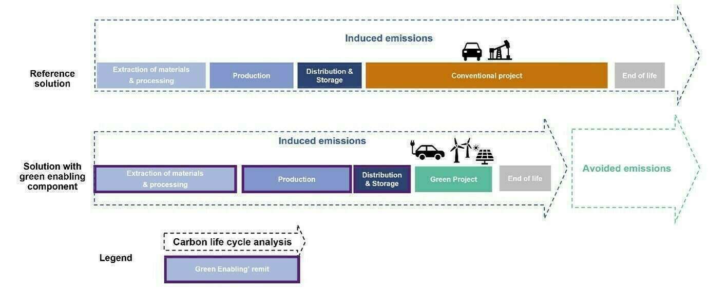 This document provides definition and guidance for Green Enabling Projects encompassing both the induced and avoided emissions dimensions, as well as the management of related environmental and social (E&S) risks. This new guidance strives to solve a missing piece of sustainable finance; which can be synthetized as following: how can an electric car be an eligible green asset if its core and most critical components are not considered climate change mitigators (namely batteries and its necessary metals)? Eligibility criteria for sustainable financing products must span across entire value chains, including upstream phases.