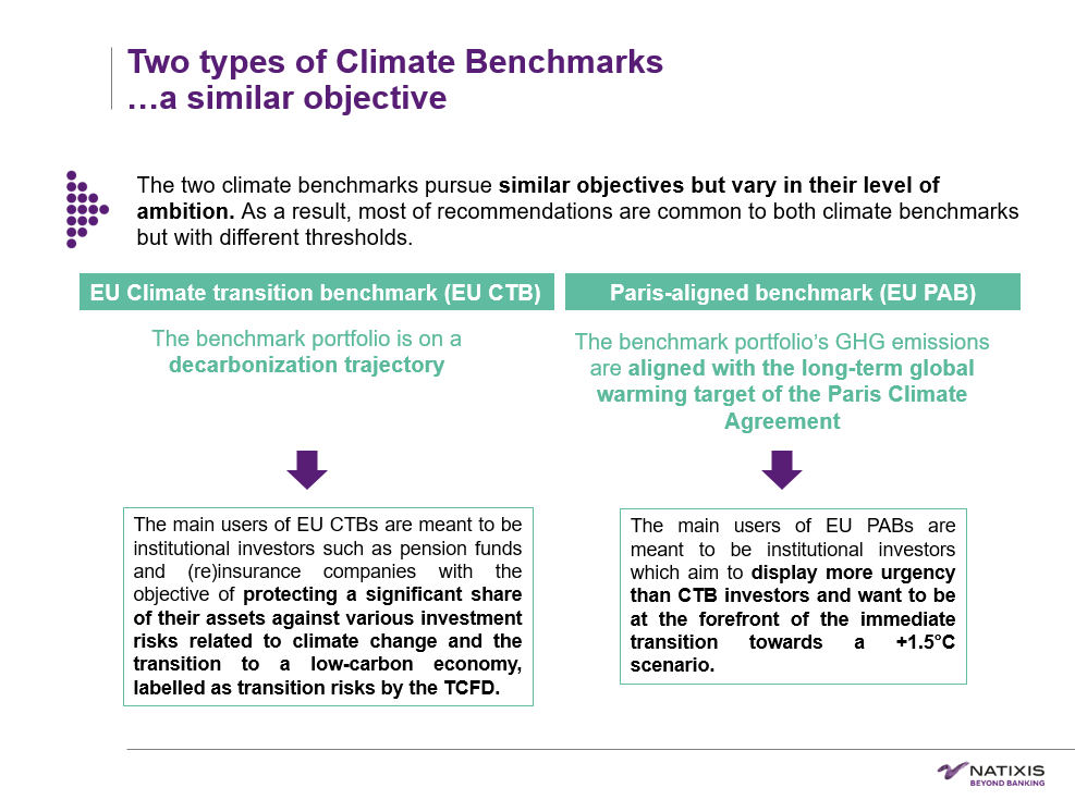 Institutional investors, pension funds, benchmark administrators, but not only! The application scope goes far beyond benchmarks in practice. With these CTB and PAB criteria, the European Commission intends to provide all investors with a ready-to-use tool for asset allocation in order to align their portfolio with the Paris Agreement.