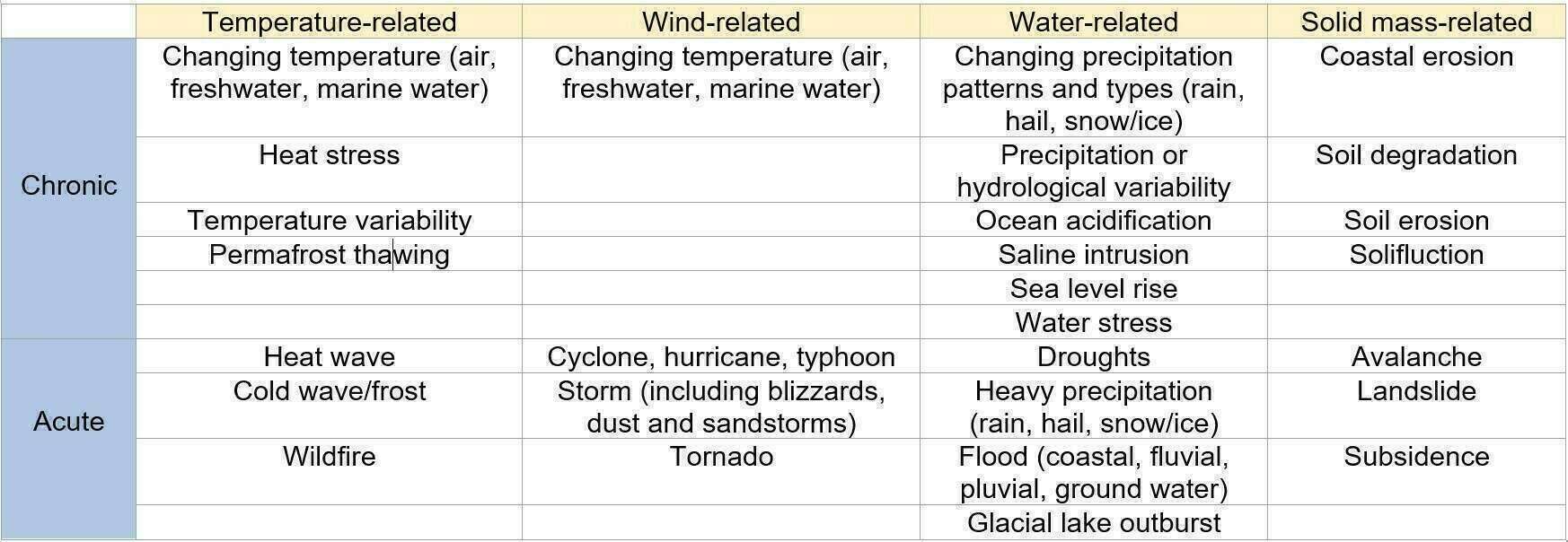Table 2: Classification of the climate-related hazards