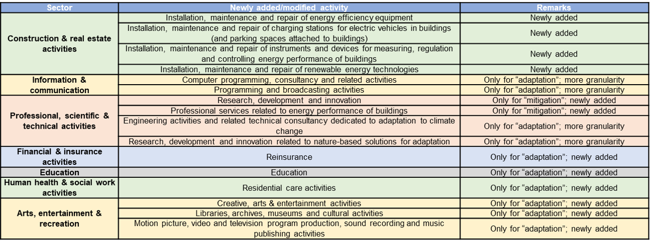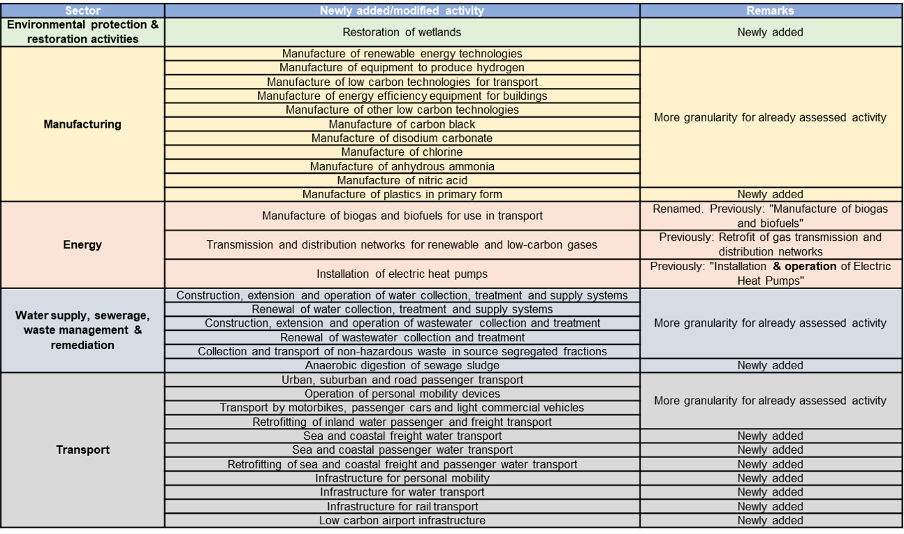 Some criteria and thresholds previously proposed by the Technical Expert Group (TEG) have been modified. For instance, the criteria for buildings to be classifieded as energy efficient has been tightened and for construction, life cycle analysis has been added as a requirement for the construction of new large buildings.